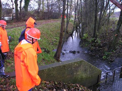 Fleestedt. Im Rahmen des diesjährigen Umweltschutztages, den die Jugendfeuerwehren aus Seevetal in Zusammenarbeit mit dem Naturschutzbund durchführen hatte die Fleestedter Jugendfeuerwehr dieses Mal die Aufgabe den Zustand mehrerer Bachläufe im Ortsgebiet zu begutachten. Die elf Jugendlichen und zwei Betreuer nahmen trotz Schneefall und kaltem Wind fast drei Kilometer Bachläufe im Bereich des Bülten auf, wobei Daten wie Wasserqualität, Breite und Tiefe, Form und Uferbefestigungen der Gewässer sowie die Vegetation im Uferbereich erfasst wurden. Beim Mittagessen konnten die gesammelten Informationen den Vertretern des Naturschutzbundes zur genauen Auswertung übergeben werden. Nach getaner Arbeit und deftigem Chili con Carne ließen es sich die Jugendlichen nicht nehmen noch eine Schneeballschlacht zu machen. Text/Fotos: J. Sievers Ein Auffangbecken am Bültenweg wird erkundet.