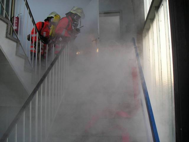 Zwei weitere Trupps unter Atemschutz durchsuchten die Räume oberhalb,
